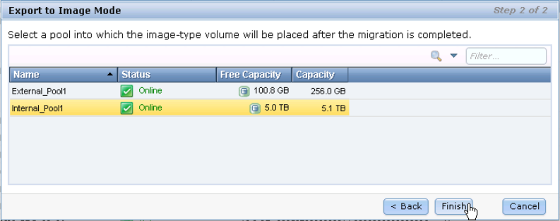 You can export only one volume or copy at a time, and you need to select a storage pool for