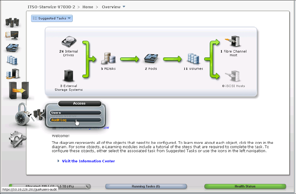 An example of the audit log after creating volumes and mapping them to hosts is shown in