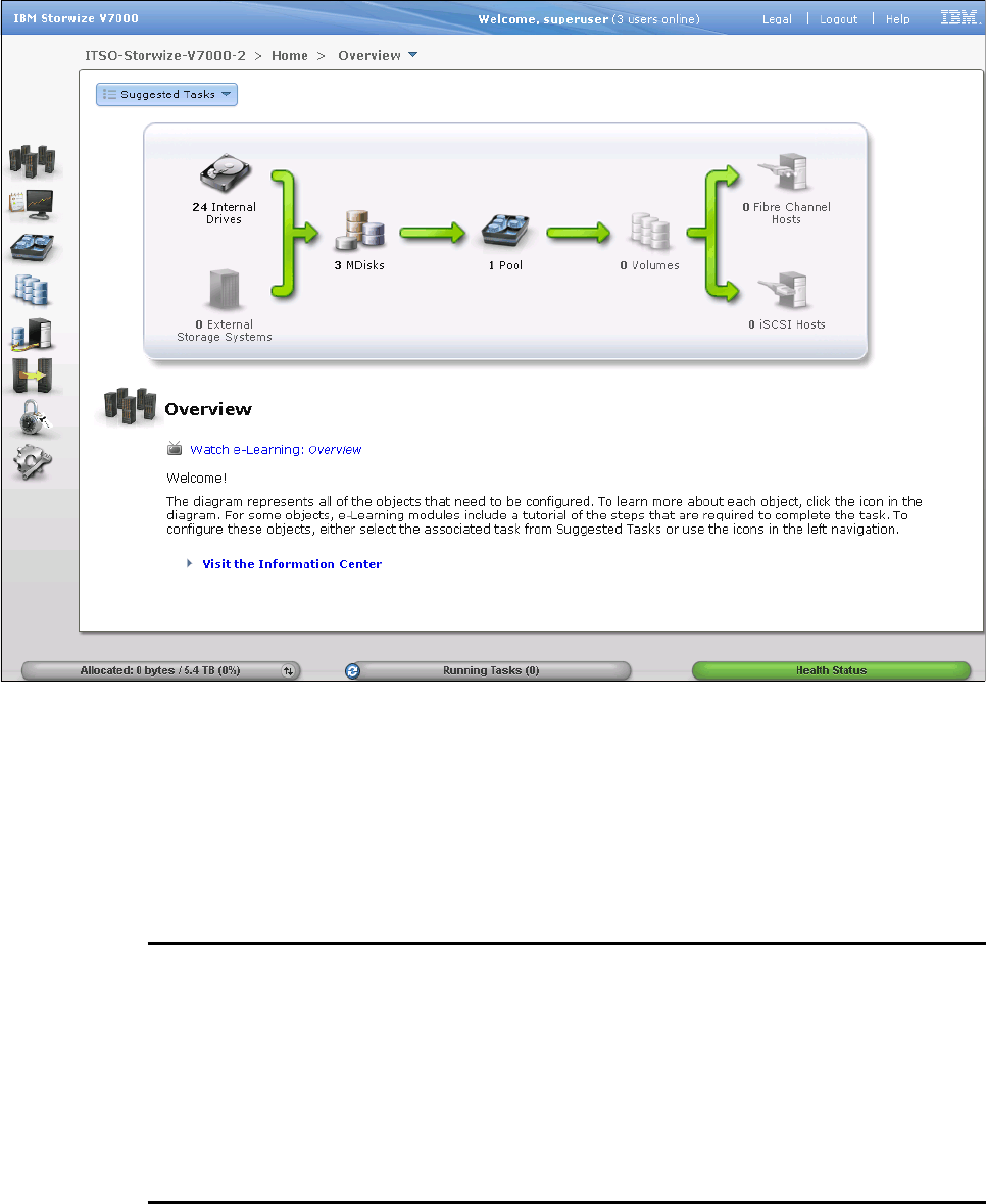 the IBM Storwize V7000 Welcome window opens (Figure 2-6).