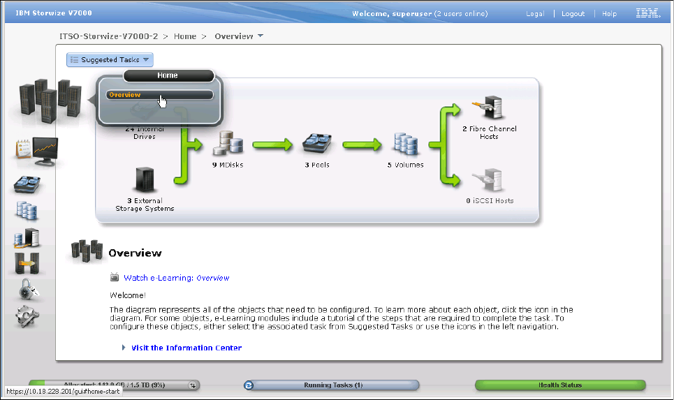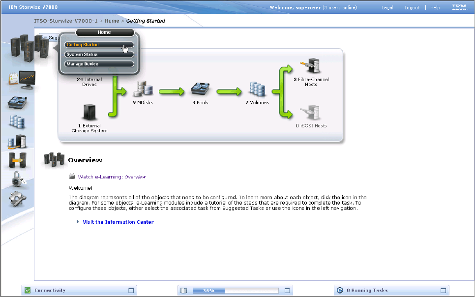 Navigating around the management tool is simple. You can hover the cursor over one of the