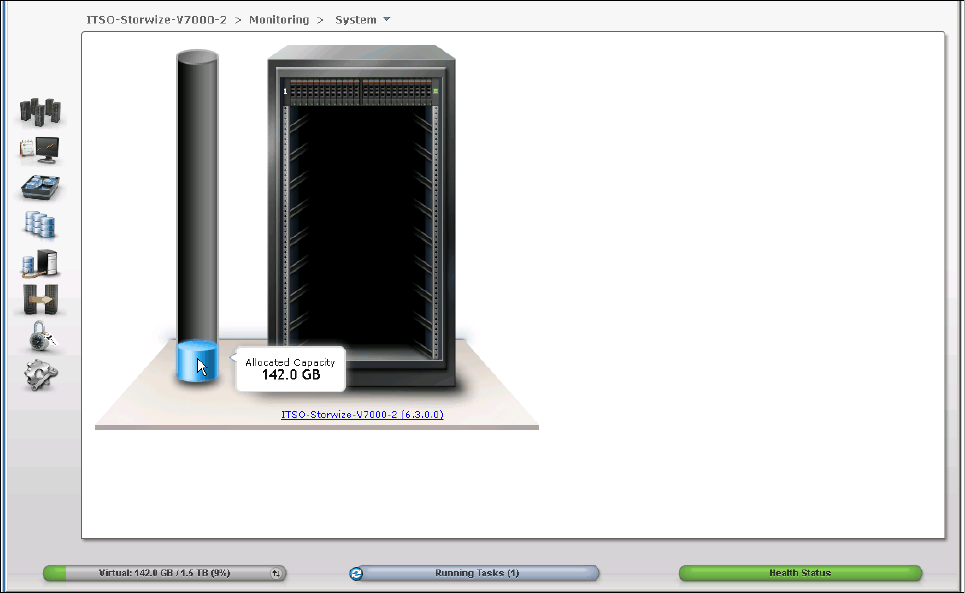 V7000 solution. This window shows a bar on the left that lists the physical and usable