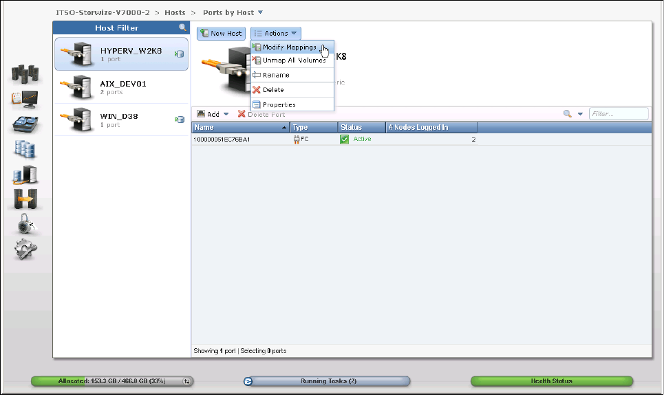 Clicking the Actions button allows you to modify the mappings, unmap volumes, rename