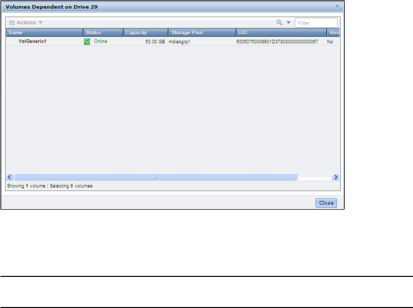 Figure 7-15 shows the list of dependent volumes for a drive when its underlying MDisk is in a