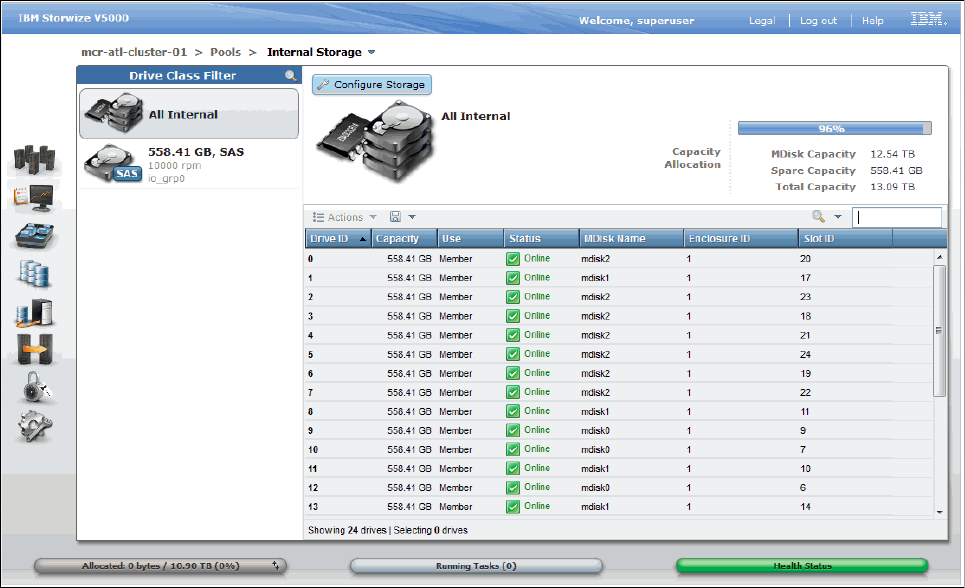 Figure3-9 shows the Internal Storage panel, which is shown because Pools was selected in