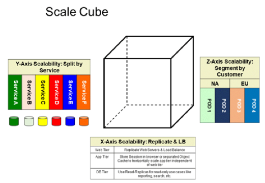 It is recommended in IIoT design to use microservices, hence, it is inherently scalable. Let's look at the following scale cube framework to understand how to scale various components: