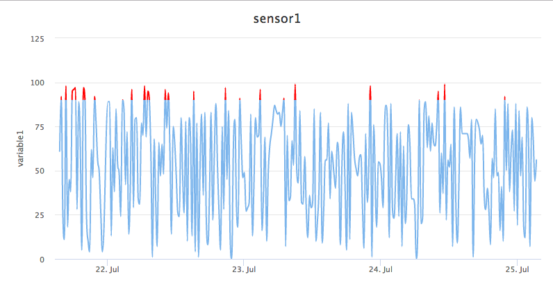 To do this, you need to type http://localhost:8080/public/index.html in a browser. After that, you will see the chart as shown in the following screenshot, visualizing the output of the MEAN function based on the time series data from the Node.js application: