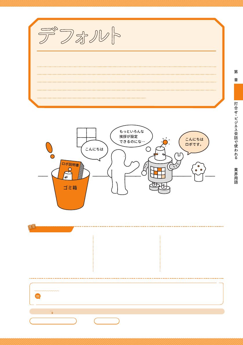 ソフトウェアで 初 期 設 定として用意され ている一 般 的な設 定 値をデフォルトと言う。コン