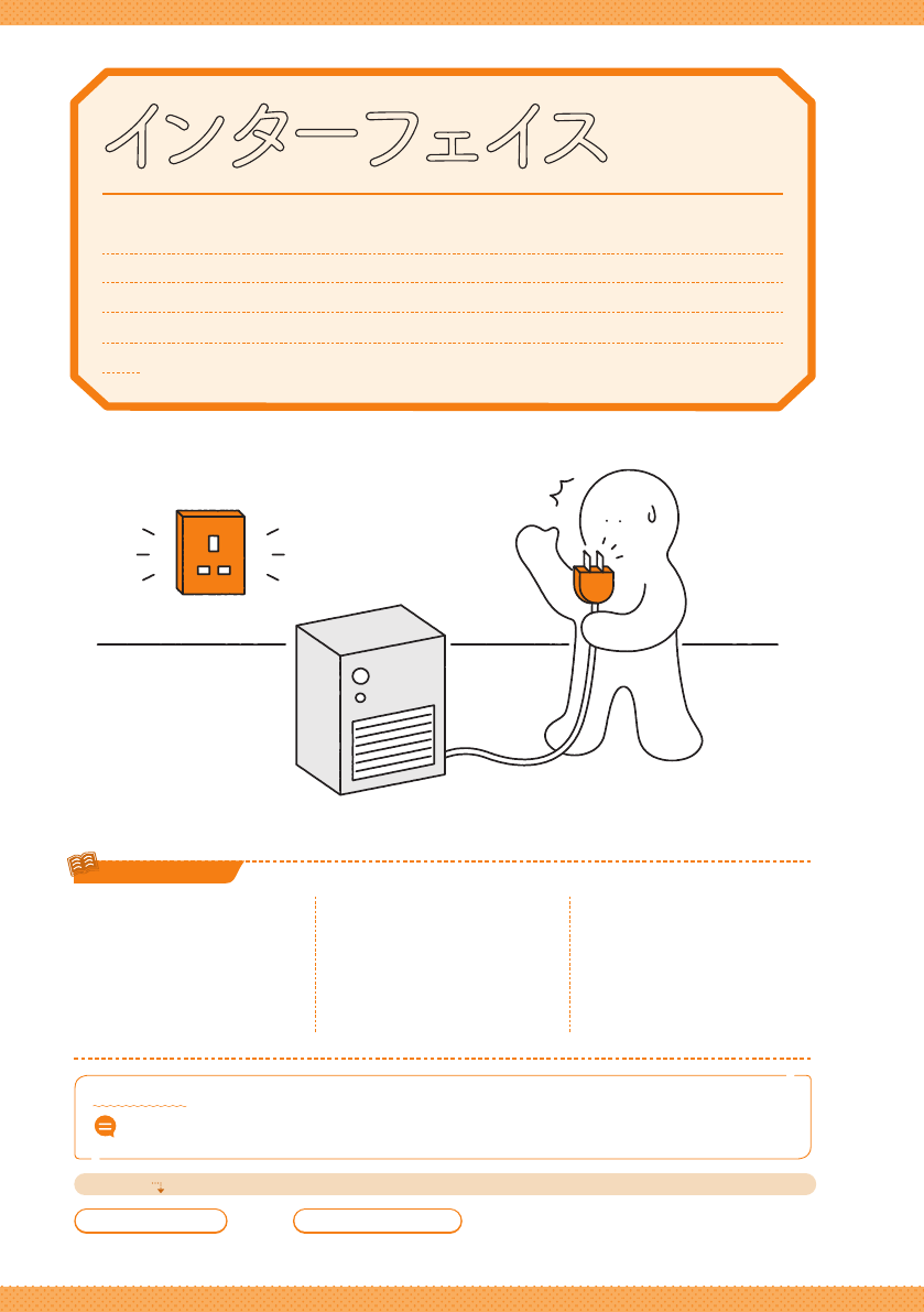 人とコンピュータ、機器と機器の間を繋ぐ部分をインターフェイスと言う。キーボードやマウス、