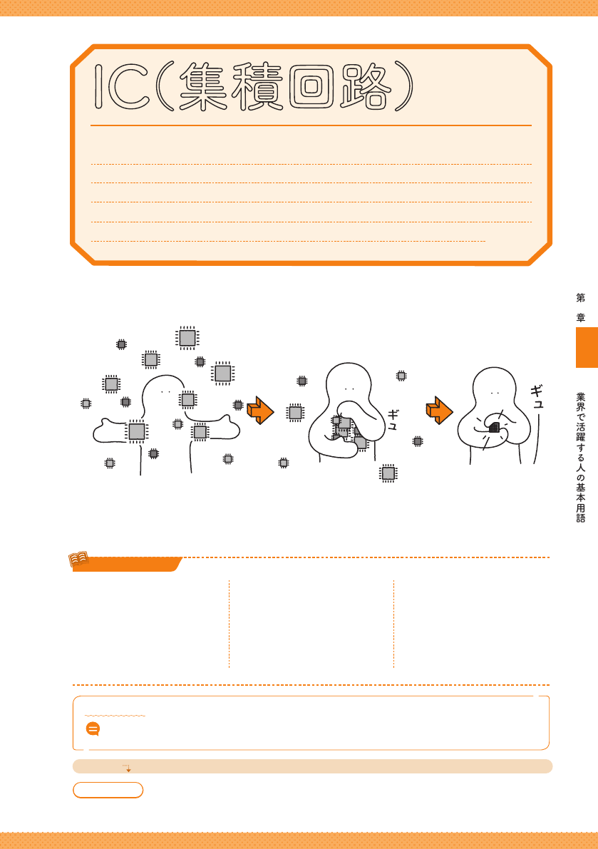 構 成が 決まっている部 品を 1 つ ずつ 組み合わ せ ずに、1 枚 のチップとして作った電子回