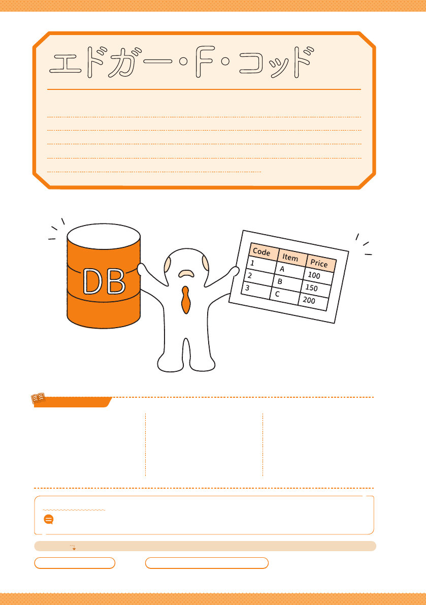 ナ ル デ ータ ベ ース を 発 明し 、「 R D B M S の 父 」とも言 わ れ る。コッド 博 士 の 理 論 を 基 に 、 現
