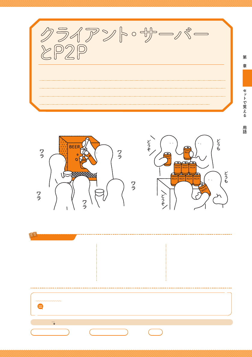 ラ サ バと略 す ことも多 い 。 一 方 、 各 コンピ ュータ が 直 接 接 続 す ることを P 2 P と 言う。