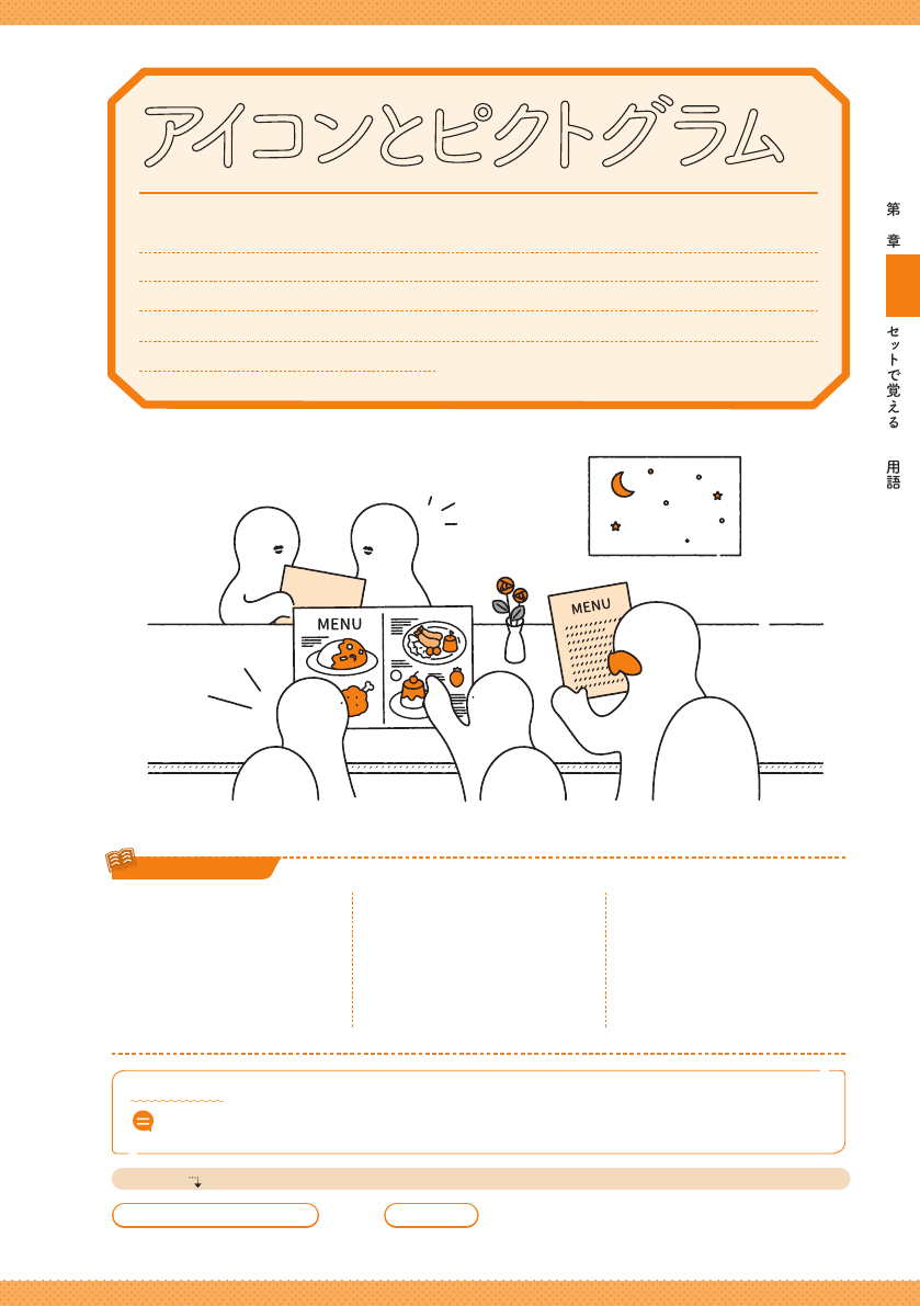 や 非 常口などを表 す ために 使 われる絵 文 字 のことをピクトグラムと言 い 、表したい 内 容 を