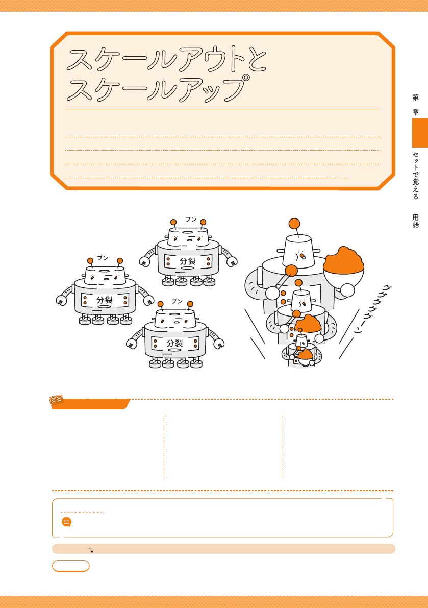 個々のコンピュータにおけるハードウェアの性能を上げる方法をスケールアップ 、複数のコ