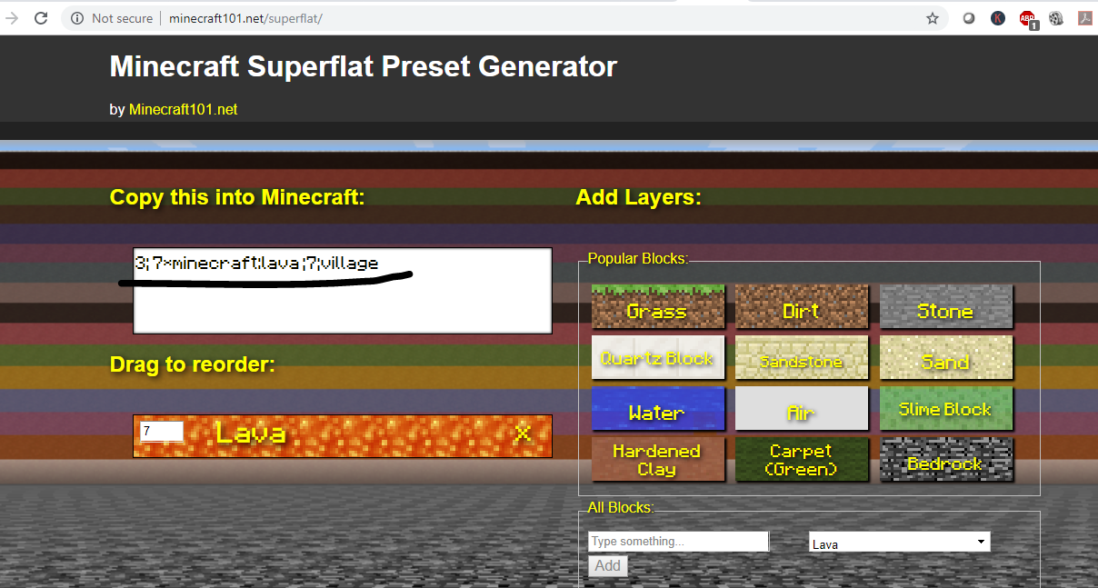 <FlatWorldGenerator generatorString="3;7,220*1,5*3,2;3;,biome_1"/>