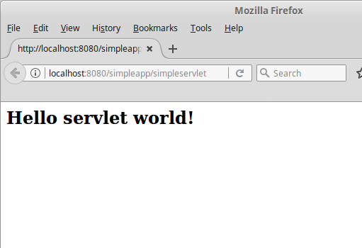 To verify that the servlet has been properly deployed, we need to point our browser to our application's URL, for example, http://localhost:8080/simpleapp/simpleservlet. After doing so, we should see a page like the one shown in the following screenshot: