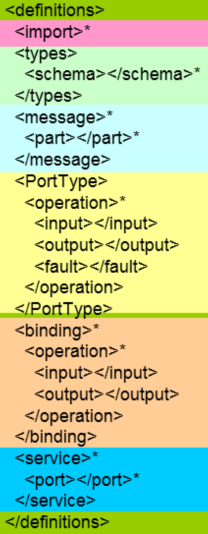Although you don't necessarily need to understand the details of WSDL when creating web services in Java, it is good to know the basic structure of WSDL. WSDLs are typically meant to be produced and processed by programs, and developers are not expected to hand-code them. Here are some of the elements in WSDL: