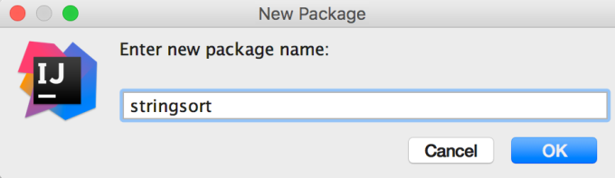 When we create the new package in the IDE, the editor will automatically create the stringsort subdirectory under the already existing src/main/java/packt/java11/example directory: