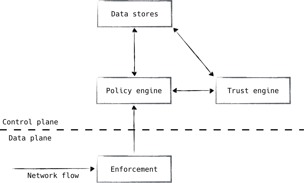 이 네 가지 구성 요소는 각자의 책임이 뚜렷하기 때문에 별도의 시스템으로 취급합니다. 보안 관점에서 볼 때 이러한 구성 요소는 서로 격리하는 것이 매우 바람직합니다. 이러한 시스템은 제로 트러스트 보안 모델의 실질적인 핵심이므로 유지 관리 및 보안 태세에 특별한 주의를 기울여야 합니다. 이러한 책임을 단일 시스템으로 통합할 것을 제안하는 모든 제안을 신중하게 평가하세요.