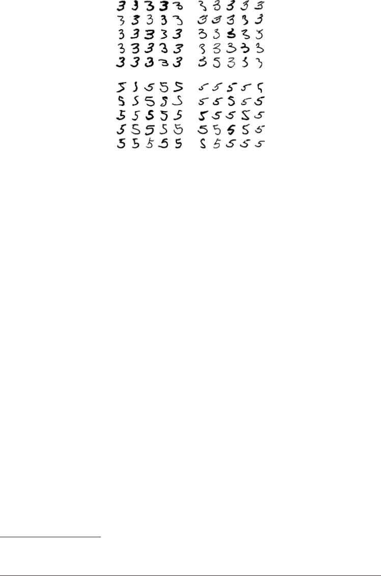 5 矩阵显示了被分类为数字 3 的图片,右侧的两个 5