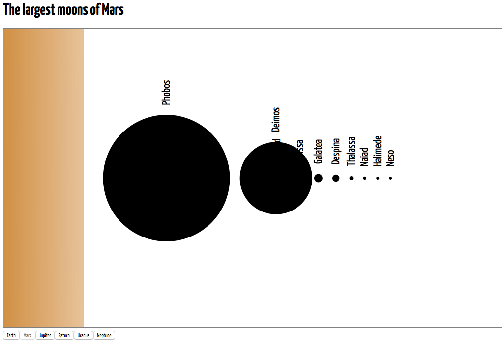 The exit selection contains elements every time you change to a view that displays fewer moons than the previous ones (the size of the selection is larger than the dataset). These elements need to be removed. All you have to do is to add the following code to the draw() function: ...