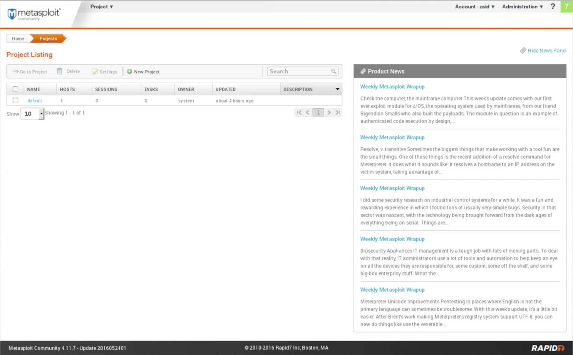 Now, we are going to log in using the username and password that we set when we installed the tool. As we can see in the following screenshot, we have a web interface for using the tool: