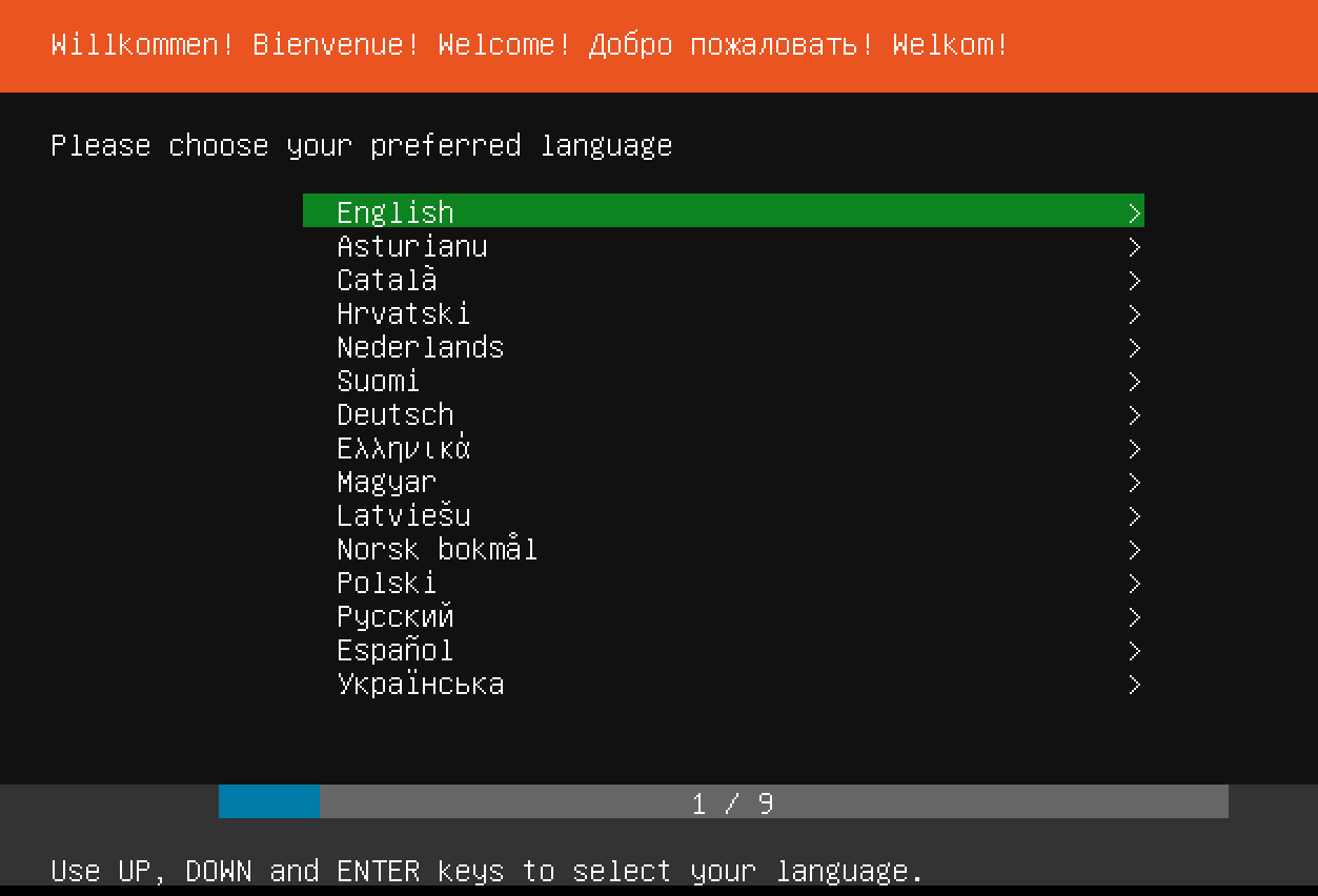 Now you can start your virtual machine from the VirtualBox main screen. Right click on the machine, select Start followed by Normal Start. If all goes well, a new window will pop up, showing you the virtual machine console. After a while, you should see the Ubuntu server installation screen in that window: