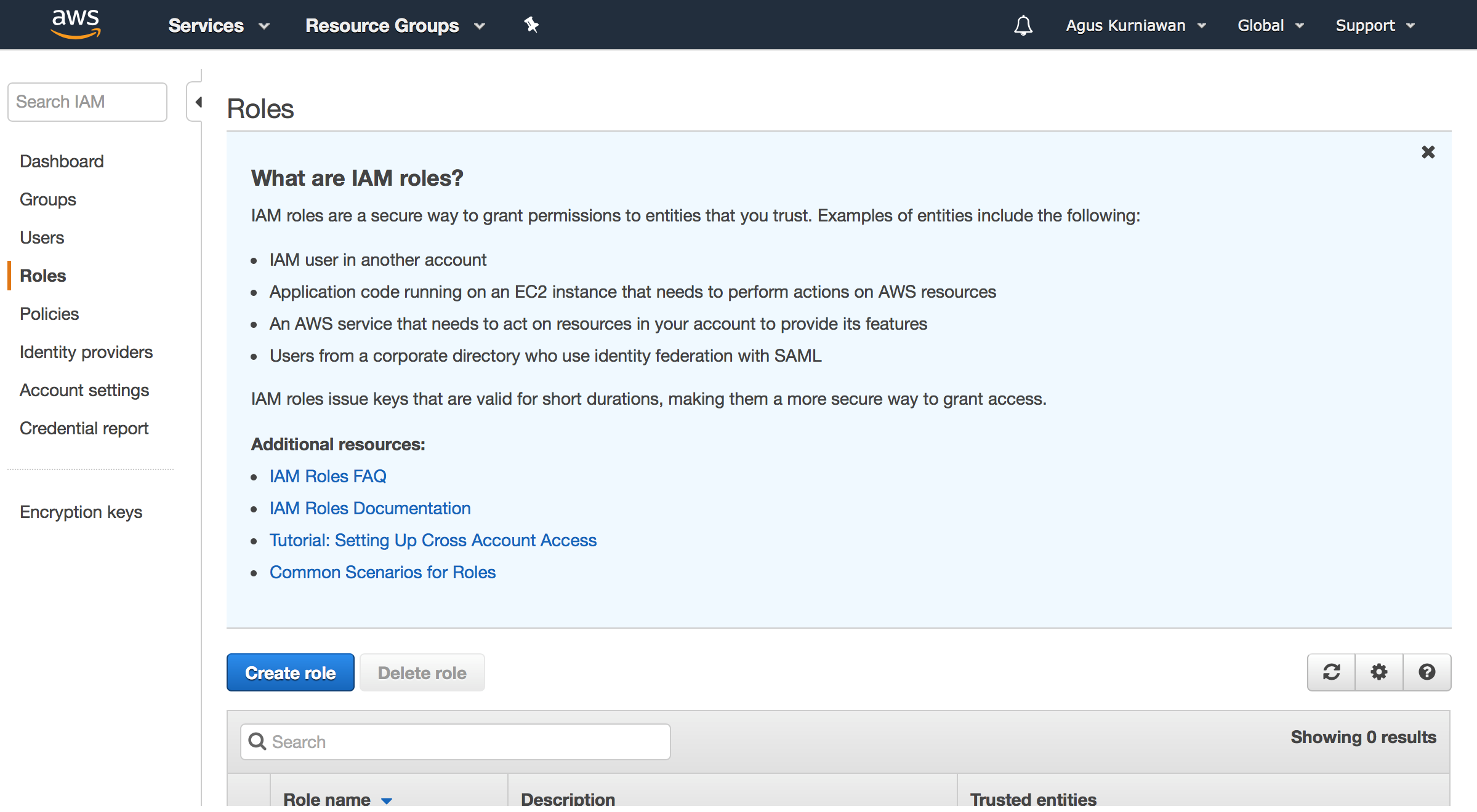 - Create a role by clicking on the Create role button from the Roles menu, and you will see the following screen: