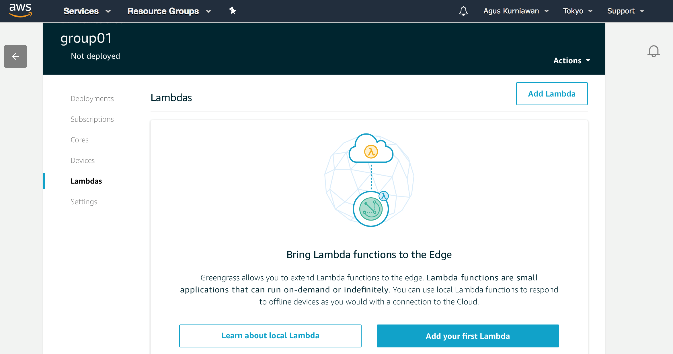After we have created AWS Lambda, we can continue to deploy AWS Lambda with AWS Greengrass. We perform the following tasks: