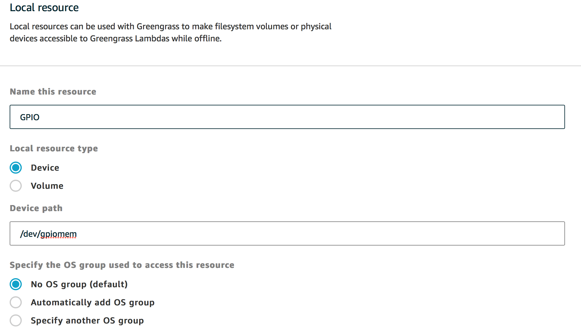 Follow these steps to configure local resources on AWS Greengrass Core: