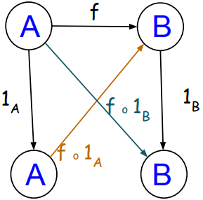 If we take A and any f to B and the Identity on A (1A), then this composite f after the identity on A (f o 1A) is equal to f.