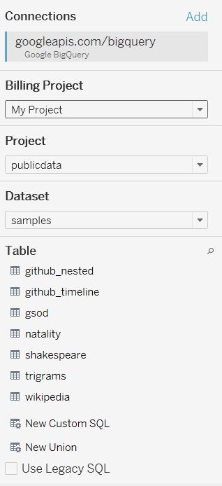 The following section explains how to use Tableau Desktop Edition to connect to BigQuery and get the data from BigQuery and create visuals: