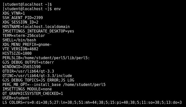The output of the $ env command is as follows: