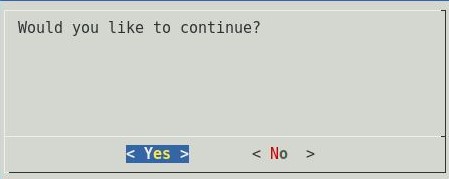 $ dialog --title "yesno box" --yesno "Would you like to continue?" 10 50