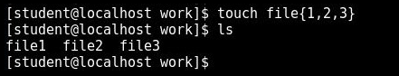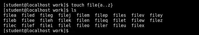 Curly braces allow you to specify a set of characters from which the shell automatically forms all possible combinations. To make this work, the characters to be combined with the given string must be specified as a comma-separated list with no spaces: