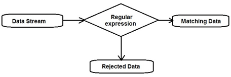 Utilities such as grep, sed, and awk use regular expressions for filtering text and then apply various processing commands as required by the user. The lines that do not match the pattern will be rejected. The following diagram explains the same concept: