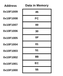 The main memory (RAM) stores the code (machine code) and data for the computer. A computer's main memory is an array of bytes (sequence of bytes in hex format), with each byte labeled with a unique number, known as its address. The first address starts at 0, and the last address depends on the hardware and software in use. The addresses and values are represented in hexadecimal: