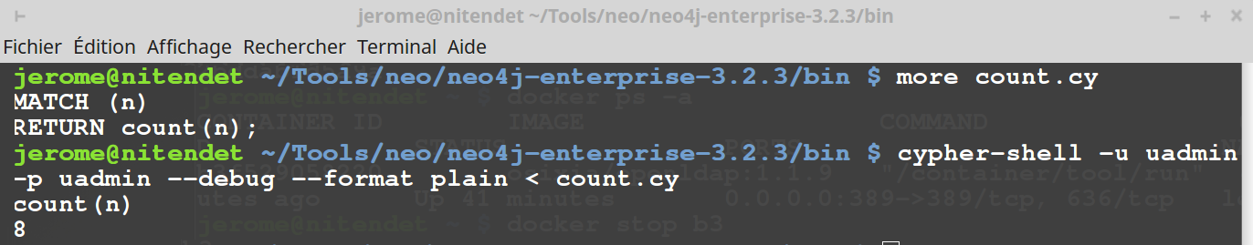 It is also possible to use it in a unix-ian way, as the destination of a file. Suppose that we have a file named count.cy containing this query: