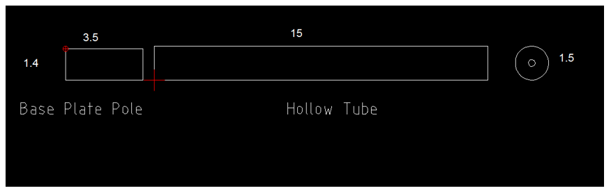 The base plate has four poles to extend to the next layer. The poles are 3.5 cm in length with a radius of 0.7 cm. We can extend to the next plate by attaching hollow tubes to the poles. At the top of the hollow tube, we will insert a hard plastic to make a screw hole. This hole will be useful for extending to the top layer. The base plate pole and hollow tubes on each pole are shown in the following diagram. The hollow tube has a radius of 0.75 cm and length of 15 cm: