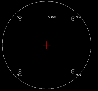 The top plate is similar to the other plates; it has four small poles of 3 cm, similar to the base plate. The poles can be placed on the hollow tubes from the middle plate. The four poles are connected to the plate itself: