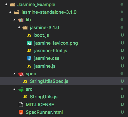 In the source directory, we keep our source code. In our example, we will use a simple StringUtils.js file that performs some operations on string variables.