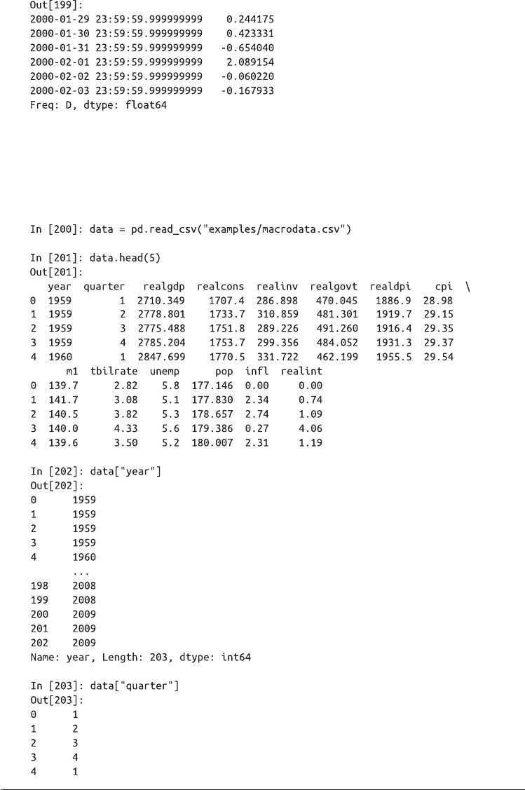 固定频率的数据集通常会将时间信息分开存放在多个列中。例如,在下面这个宏观经济