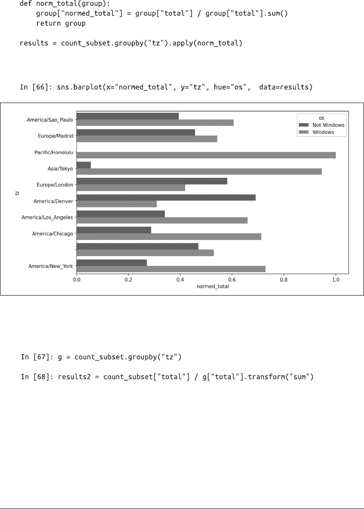 图 13-3:计数最多时区中的 Windows 用户和非 Windows 用户的百分比