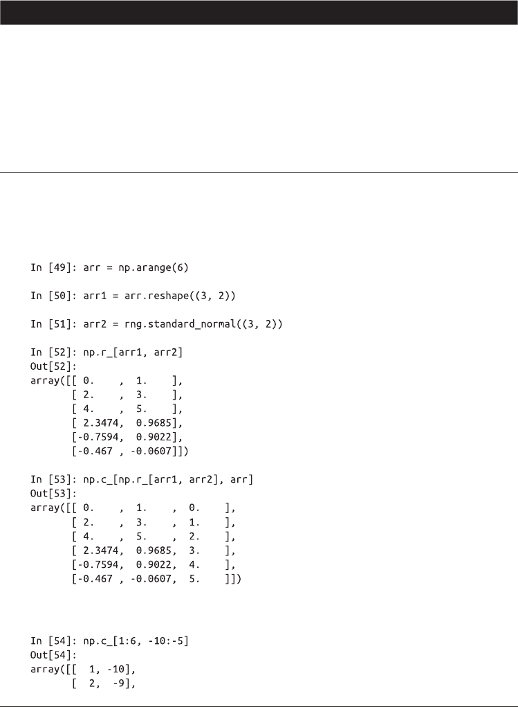 命名空间中有两个特殊的对象 r_ c_,它们可以使数组的堆叠操作更简洁: