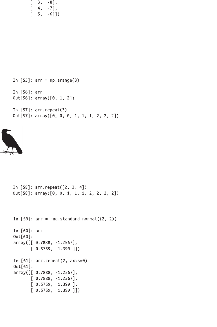 函数。repeat 会将数组中的各个元素重复一定次数,从而产生一个更大的数组:
