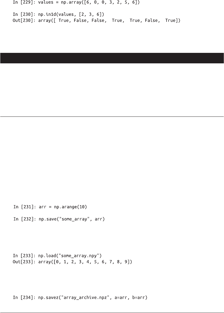另一个函数 numpy.in1d 用于检查一个数组中的值是否在另一个数组中,并返回一个布