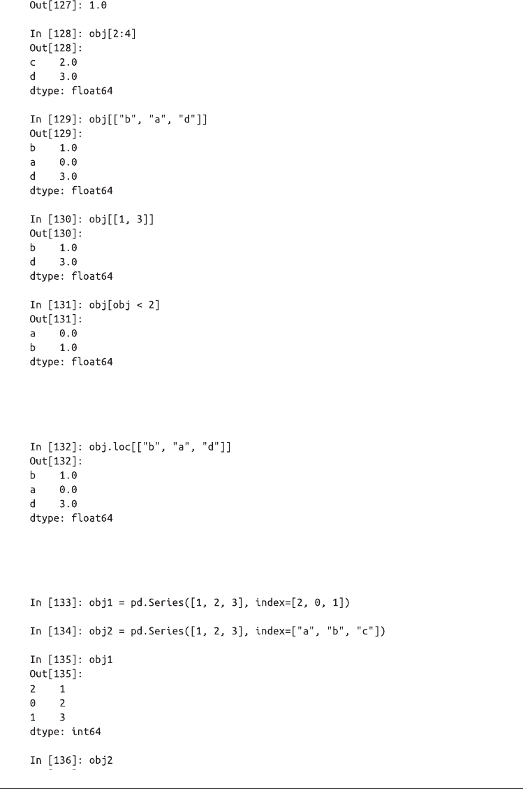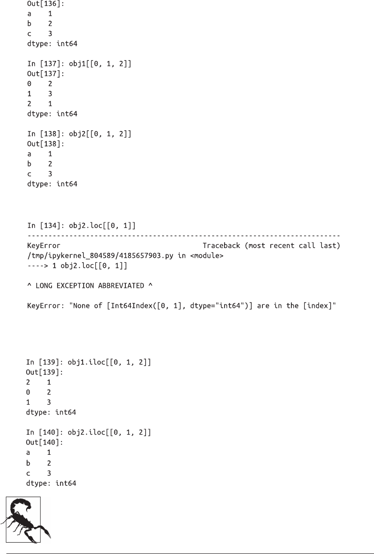 使用 loc 时,如果索引中不含整数,则表达式 obj.loc[[0, 1, 2]] 会失效: