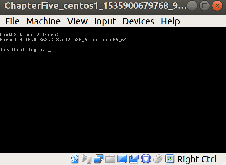 Now, bring up the VirtualBox main window, and double-click your VM so, you can see the black console: