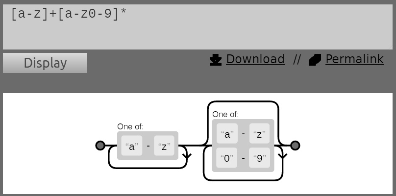 Regular expressions can be tough to understand. Fortunately, there are utilities available to help in visualizing regex. The page at http://www.regexper.com lets you enter a regular expression and creates a graph to help you understand it. Here is a screenshot describing a simple regular expression: