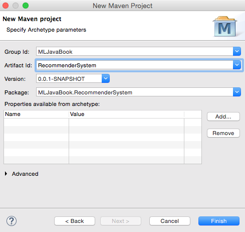 You will need a recent version of Eclipse, which can be downloaded from its home page (https://www.eclipse.org/downloads/). In this book, we will use Eclipse Luna. Open Eclipse and start a new Maven Project with the default settings, as shown in the following screenshot: