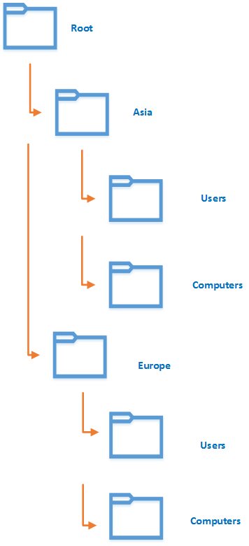 This is one of the most common models for large organizations. The OU structure will be based on the geographical location of the branch offices. Each of these branch offices may also have its own IT team. So, the main idea behind this model is to delegate administration control: